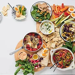 Verschillende hapjes samen kunnen een heerlijke maaltijd vormen voor je gasten thuis. Als rond 17.00 uur alles is opgegeten, krijg je de beschrijvingen van alle recepten in een boekje mee naar huis.